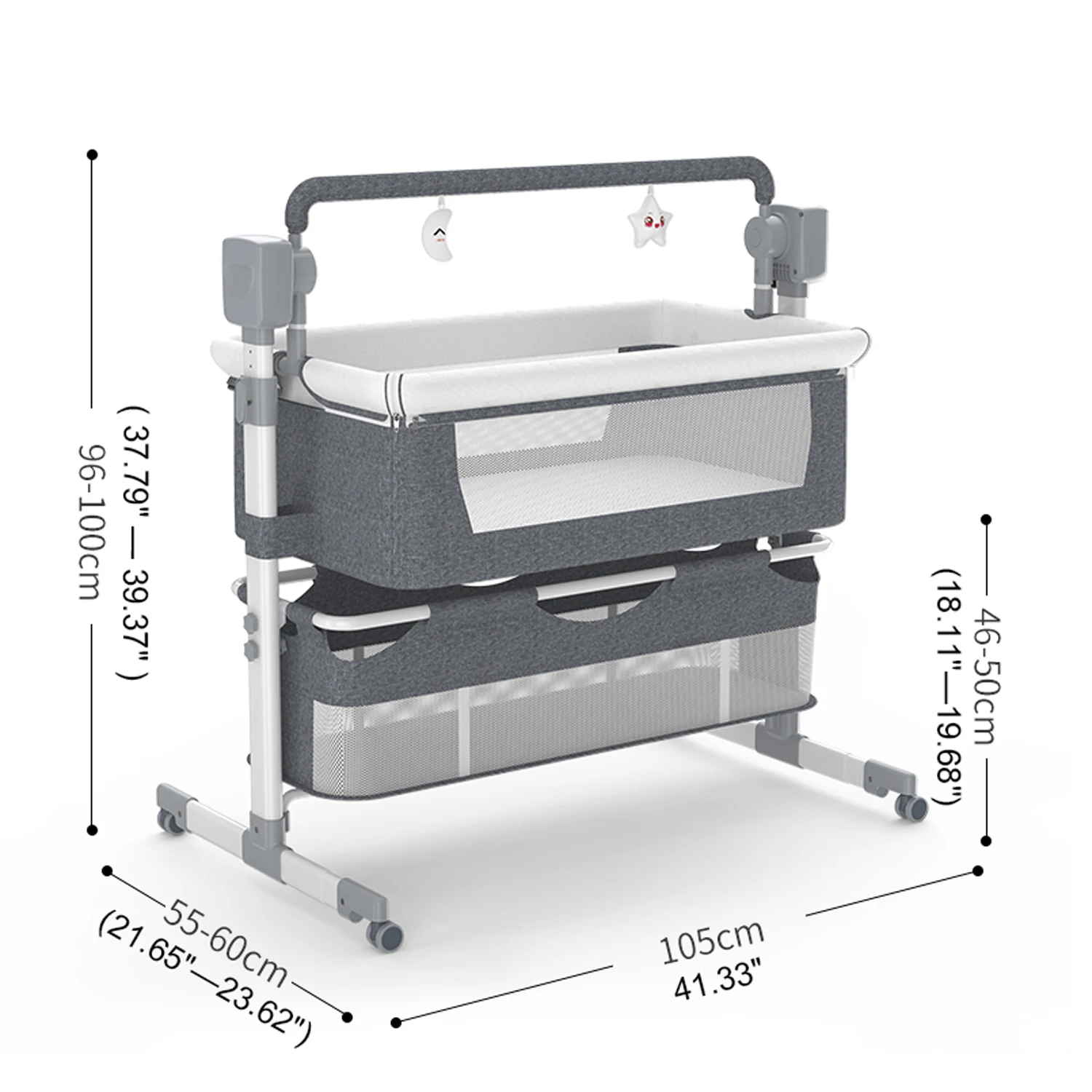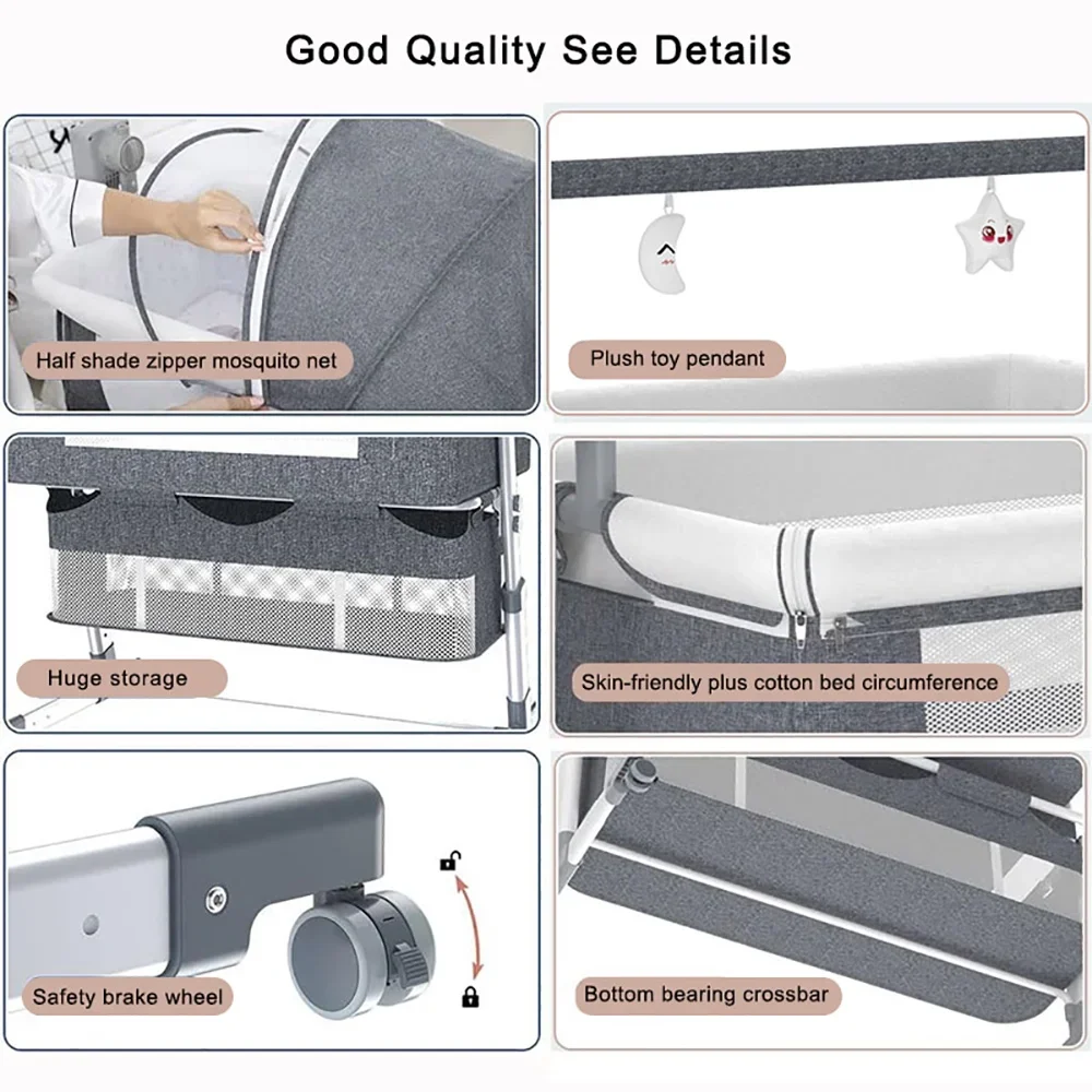 This automatic rocking baby bassinet is designed for newborns aged 0–6 months, providing a safe and soothing sleep environment. Features gentle electric rocking with remote control for easy adjustment and calming. Bedside co-sleeper design keeps baby close for nighttime feeding and care. Smooth-rolling wheels allow easy movement around the home or travel. Foldable and portable structure makes it ideal for travel and small spaces. Sturdy frame and breathable materials ensure comfort and safety for infants. Adjustable rocking settings help babies fall asleep peacefully. Easy to assemble, store, and transport. Ideal for naps, overnight sleep, and everyday use. A practical, reliable, and comforting solution for modern parenting.