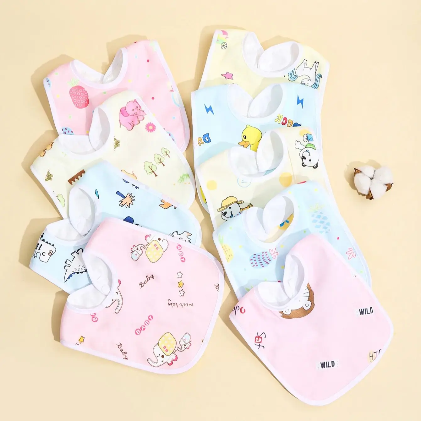 This set of 4/6/8/10 cotton waterproof baby bibs is designed to keep mealtimes clean and stress-free. Made from soft, breathable cotton, they are gentle on delicate baby skin. The waterproof layer protects clothing from spills and stains. Lightweight and comfortable for babies and toddlers to wear. Adjustable snap closures ensure a secure and snug fit. Suitable for newborns, infants, and young toddlers. Ideal for both boys and girls with versatile designs. Easy to clean and maintain for busy parents. Perfect for daily feeding, teething, or snacking. Durable materials hold up to frequent washing and repeated use. Helps promote independent eating while reducing mess. A practical and essential accessory for every baby’s mealtime routine.