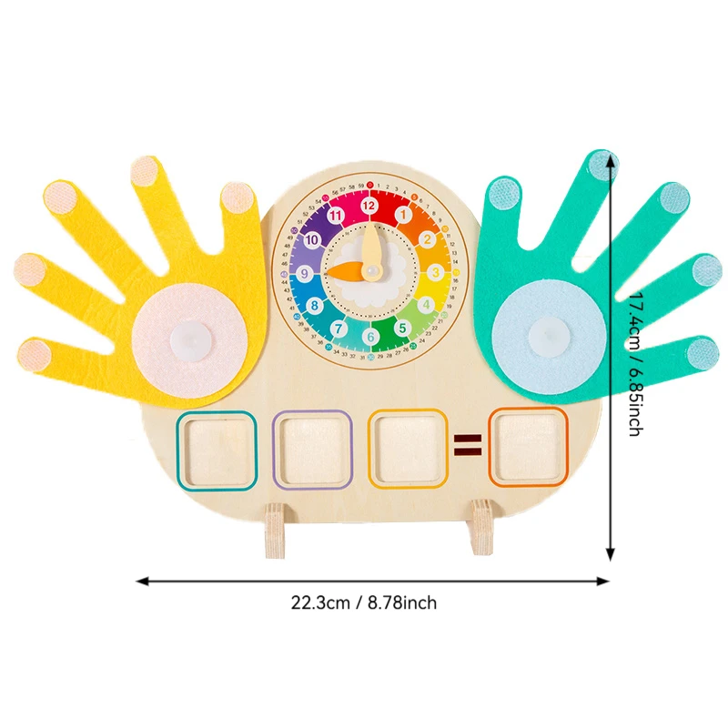 This Montessori finger math learning clock is designed to help children develop early arithmetic and time-telling skills. Made from durable wood with movable clock hands and colorful number markers. Encourages learning addition, subtraction, and basic math through hands-on interaction. Ideal for preschoolers and young learners practicing counting, number recognition, and fine motor skills. Bright and engaging design captures attention and makes learning fun. Lightweight and safe for little hands to manipulate. Perfect for home, classroom, or Montessori-style learning activities. Helps children build confidence and independent learning habits. Supports cognitive development and problem-solving abilities. A practical and educational tool for early math mastery and interactive play.