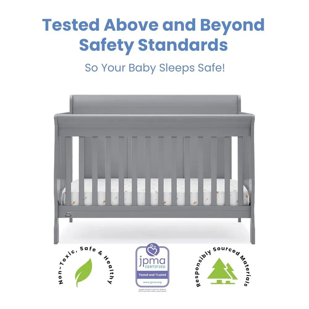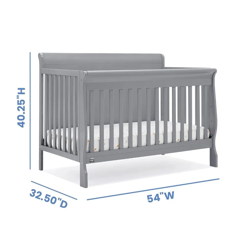 The Simmons Kids Carter 6-in-1 Convertible Crib in grey is designed to grow with your child from newborn to toddler. Greenguard Gold certified, ensuring a safe and healthy sleep environment. Converts easily from a crib to a toddler bed, daybed, and full-size bed as your child grows. Durable construction and sturdy materials provide long-lasting safety and support. Stylish grey finish complements any nursery décor. Ideal for small spaces with multifunctional design. Easy assembly and adjustable features provide convenience for parents. Designed for comfort, safety, and longevity. Perfect for nursery, home, or gift-ready setup. A practical, versatile, and modern crib solution for growing families.